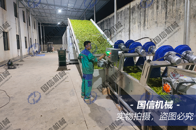 今天給大家介紹的是我們云南客戶豆角烘干加工現(xiàn)場,烘干豆角的流程需要把新鮮的豆角通過漂燙機進行殺青護色,然后通過輸送帶放入烘干設備內,經過數(shù)小時的均勻排濕烘干后的干貨成色非常好很受市場歡迎,客戶選用的是大型連續(xù)式清洗殺青烘干設備,設備是自動化生產全程只需一兩人工,烘干成本低效率高非常適合大型農業(yè)加工使用。